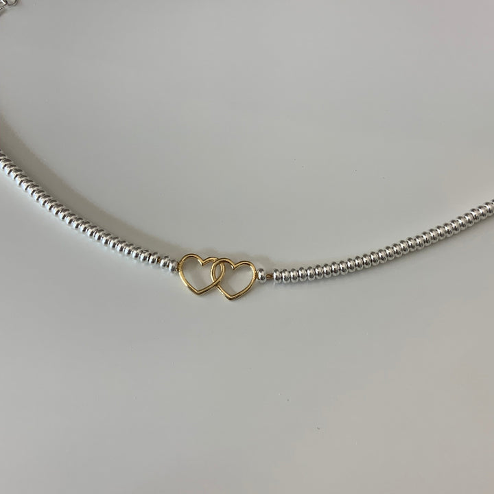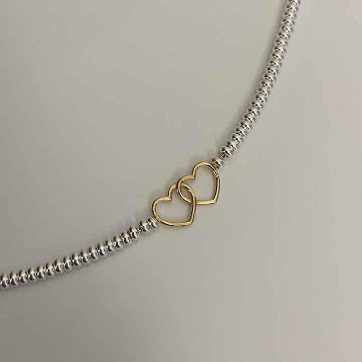 Bracciale con sfere argentate e doppio cuore dorato liscio - Collezione SAN VALENTINO