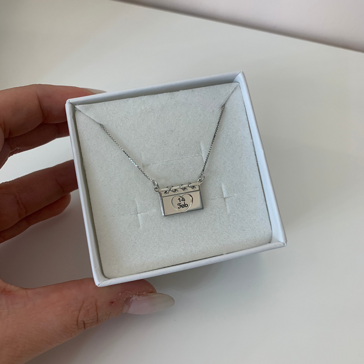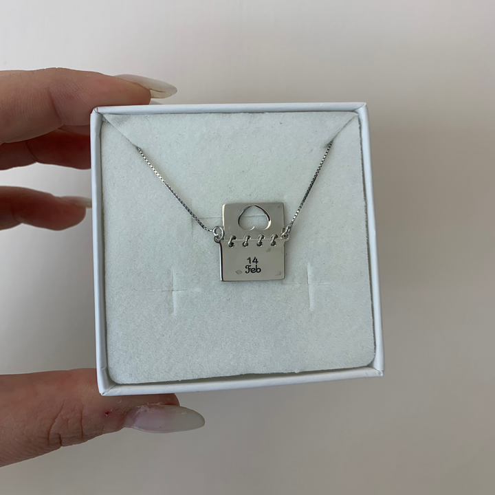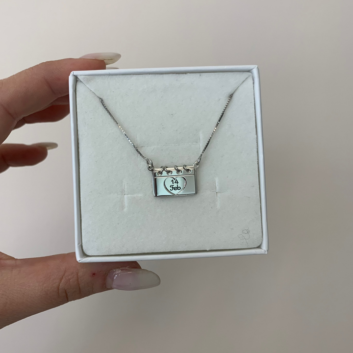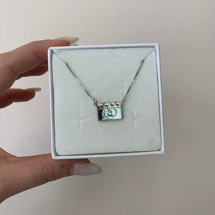Collana calendario d'amore con cuore ed incisione "14 febbraio".