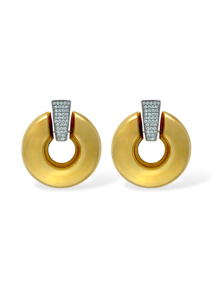 Orecchini geometrici elettroformati con dettaglio superiore zirconato.